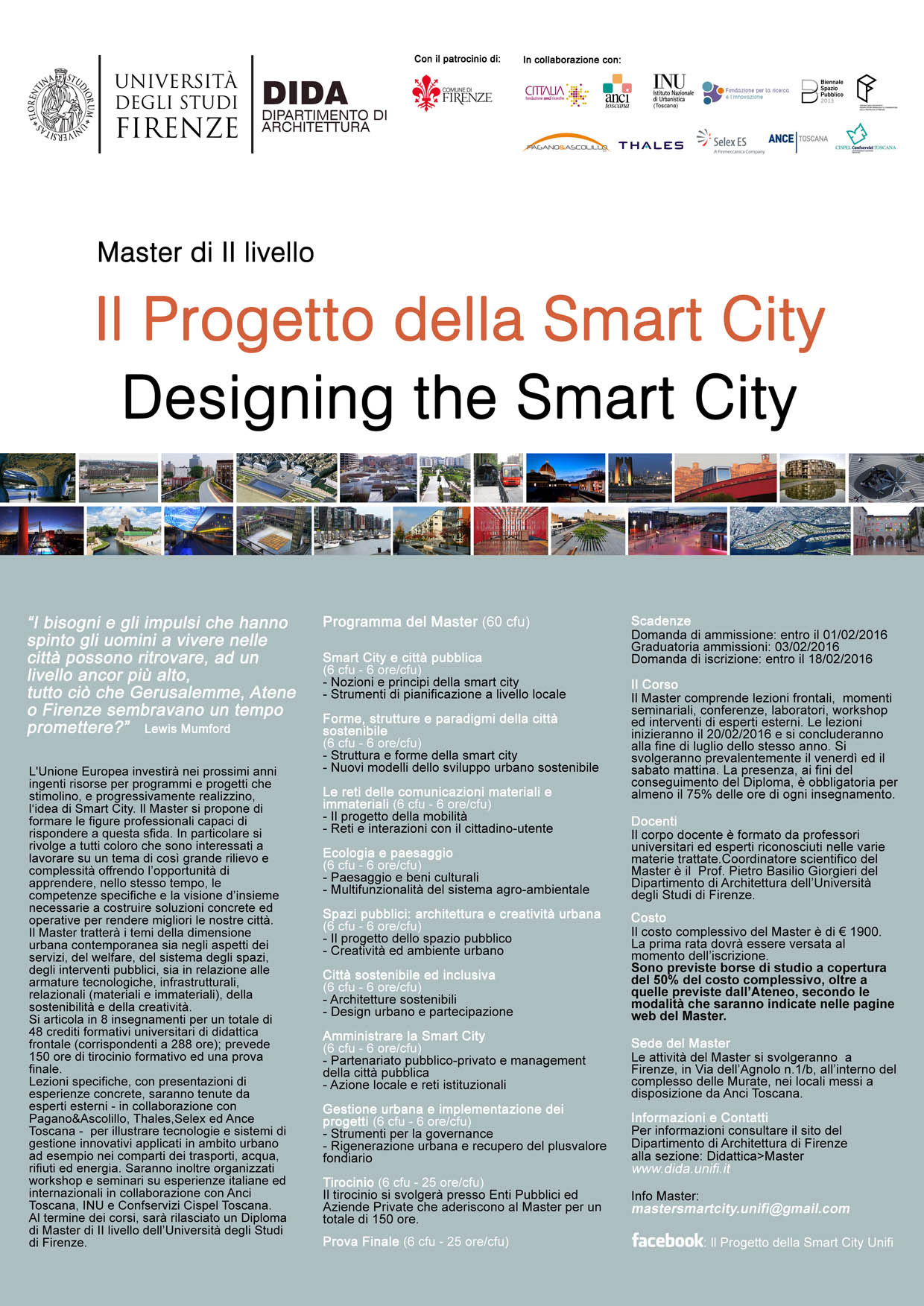 Anche quest'anno il Dipartimento di Architettura - DIDA - dell'Università di Firenze organizza un Master di II livello dal titolo "Il Progetto Smart City"